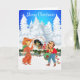 Little Cowboy and Cowgirl With Rope Lights and a horse standing behind the fence in a Winter Scene Christmas Card.