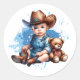 Little Cowboy and Teddy Bear Baby Shower Classic Round Sticker