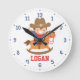 Little Cowboy on Rocking Horse Boys Wall Decor Round Clock