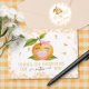Soft watercolor bubbles, tiny citrus slices, and bright, playful accents create a cheerful background that complements spring and summer baby showers beautifully. The heartfelt message, “Thanks for showering our cutie with love,” adds a sentimental touch guests will adore.