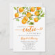 Rustic little cutie theme gender neutral baby shower invitation card featuring illustration of the citrus fruit on a tree branch. Perfect for a a shower in the summer.