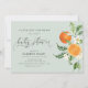little cutie baby shower invitation and watercolor greenery citrus oranges. The text and colours can be personalised.