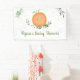 This cute birthday banner features lush watercolor greenery with a cute clementine.