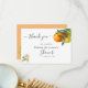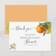 Baby shower thank-you card with an Orange and orange blossom motif. Simple style adorned with choice Calligraphy additions to the text.