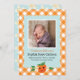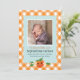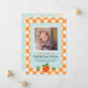 Share the exciting news of your new baby's birth with this sweet Little Cutie Orange Birth Announcement. The design includes a cute, illustrated orange character with coordinating citrus flowers and leaves, orange gingham and a soft blue scalloped background.
