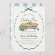 This cute "little cutie pie" boy's birthday invitation features a blueberry pie with blueberries surrounded by a navy blue bow frame. The reverse side features a white background with baby blue gingham patterns. Personalize it for your needs. You can find matching products at my store.