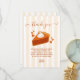 Warm up your hearts this fall with a charming baby shower thank you card featuring soft peach stripes, a sweet slice of pumpkin pie, and fluttering hearts all around. With the whimsical message “a cutie pie is baking” front and centre.