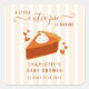 Warm up your hearts this fall with a charming baby shower sticker featuring soft peach stripes, a sweet slice of pumpkin pie, and fluttering hearts all around. With the whimsical message “a cutie pie is baking” front and centre.