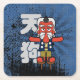 This blue and black paper coaster set features a cartoon drawing of a Daitengu, one of the yokai monsters from the mythology of Japan. The Daitengu is one of the two types of tengu, and is easily recognised by its long nose and red skin. Although tengu can be vicious, this one is cute. The large kanji characters in the background say "Tengu" in Japanese.