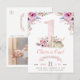 Affordable custom printed first birthday party postcard invitations with an easy to use template and fully editable fonts and colours. This cute design features a pink watercolor number one surrounded by boho flowers and a baby deer. Perfect for a whimsical woodland little girl's first birthday party! Personalise it with your party details. Reverse side of postcard has space for photos or additional text if needed. Use the design tools to add photos, customise the text fonts and colours to create a unique birthday party invitation design.