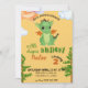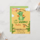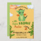 The invitation features a darling watercolor illustration of an adorable baby dragon and trees. The background is a soft sage green.