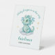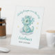 Watercolor Cute Little Dragon is on the Way Baby Shower Pedestal Sign.