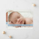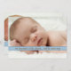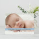 "We dreamed a little dream... and he came true" - reads the sweet message on the front that introduces your little boy to family and friends. Thoroughly modern and elegantly simple, this sweet design features two photos of your baby - one on the front, one on the back and is adorned with a faux image of a lovely blue ribbon image. Note: the ribbon effect is a flat graphic image and is only meant to look like an actual three dimensional ribbon.