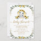 A beautiful fall sunflower design with lovely hand painted eucalyptus foliage and a baby elephant with black text in the middle. The text and green back colour can be edited along with other features of this template.