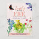 Birthday invitation with a little dandlion fairy and colourful wildflowers . A happy collage of handpainted watercolor paintings for the little one who celebrates her fifth birthday.