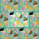 Little Fairy Ballerinas fabric, a cute, fun design great for little girls who love the ballet, dancing, flowers, and butterflies! Features ballerinas with brown, black, and blonde hair wearing tutus and fairy wings, crowns, flowers, butterflies, and magic wands on an aqua blue background.