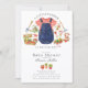 Celebrate your little farmer on the way with this charming farmhouse baby shower invitation! Featuring a sweet denim romper layered over red gingham, fresh garden vegetables, rustic farm tools, and country-inspired watercolor details, this design is perfect for a farm themed baby shower, barn baby shower, or locally grown celebration.