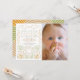 This cute and modern "our little farmer" fall/autumn gender-neutral 1st/first birthday photo invitation features a scarecrow with pumpkins, fences, trees, and clouds. The reverse side features geometric field patterns. Personalise it for your needs. You can find matching products at my store.