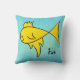 Lay your head on this silly Little Fish Big Fish Funny Pillow. One side has a small goldfish and large text "Little Fish", the other side has a large goldfish with "Big Fish" written small against a blue watercolor background. Have fun with this funny ironic pillow.