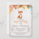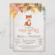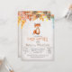 Fall Autumn Glitter Leaf Floral Little Fox Baby Shower Invitation.