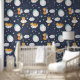 Little Fox Cute Moon Stars Kids Pattern Wallpaper