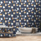 Little Fox Cute Moon Stars Kids Pattern Wallpaper features cute whimsical foxes accented with clouds, moons and stars on a dark blue background. Perfect for kids bedrooms, nursery decor, playroom, home decor, office and party decor. Created by Evco Studio www.zazzle.com/store/evcostudio