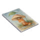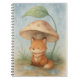 A whimsical watercolor illustration of a small fox taking shelter under a giant mushroom during a gentle rain. With soft, earthy tones and a dreamy atmosphere, this piece captures the quiet magic of a rainy day in the forest.