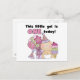 An adorable baby girl in a party hat with ballons on Little Gal is One first birthday T-shirts, bodysuits, stickers, tote bags, cards, and matching first birthday invitations!