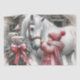 Christmas tissue paper. Ai watercolor illustration of a scene on a rustic farm with a sweet little girl bundled up in a pink winter coat taking care of her pretty white horse on a snowy Christmas day.