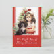 A sweet little girl holds her spaniel puppy dog beside the Christmas tree. She is cutely dressed in period holiday white with lovely red holiday bows and sashes. You don't have to love dogs to like this card, but you can! It is from a vintage, watercolor design. "We Wish You A Merry Christmas" is the classic seasonal message.