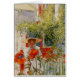 Poppies growing in the front yard with a little girl standing in the midst. Vintage Carl Larsson watercolor.