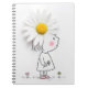 A charming illustration depicts a line drawing of a little girl with rosy cheeks, holding a tiny flower and wearing a white daisy on her head