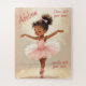 Cute personalized puzzle for little girls with an illustration of a little African-American girl ballerina in a pink tutu in a watercolor style and a sweet ballet themed quote. Add your daughter's name in the personalize area.