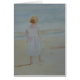 A little girl dressed in white playing by the sea from an original watercolour by me.