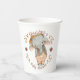 Adorable watercolor little girl's baby shower party cups, featuring a little girl elephant in bow and overalls in a boho style, in hues of orange and sage.
