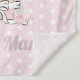 Cute custom baby girl elephant wall tapestry for the infant nursery or toddler bedroom. This adorable little elephant is holding a pink and glittery silver balloon and sitting on a gift box. The background is a white polka dot pattern on pink. Personalise by adding your child's name.