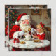 Little Girl Giving Santa a Gift Christmas Holiday Card
