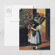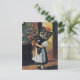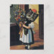 Cute vintage artwork. Little Girl Kitten With Flowers
