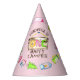 Throw the perfect One Happy Camper themed birthday party for your little girl. These paper party hats have pretty watercolor illustrations of an assortment of camping supplies set against a pretty pink background and are ready to be personalised with the name of your little happy camper.