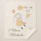 Precious smiling Little Girl in a yellow pattern dress with any Personalised name, birthdate or your message on a soft quality sherpa blanket. These magical friends include Sunshine, an adorable Bunny Rabbit, and a Golden Owl with flowers in beautiful grey and yellow muted Colours and background colour options.