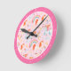 Little Girl Pink Unicorn Pattern with First Name Round Clock