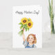 This mothers day card features a watercolor portrait of a little girl holding up a bouquet of sunflowers.