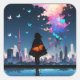 Little Girl With Colourful Butterflies Square Sticker