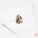 A cute little girl holds her black and white spaniel puppy by the Christmas tree. She is adorable in white with lovely red holiday bows. You don't have to love dogs to like this sticker, but you can! It is a vintage, watercolor design.