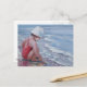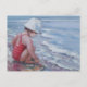 This sweet little girl playing on the beach is by Florida artist Mary Hubley. The beach child reaches out for a seashell that she finds on the edge of the little wave. The girl wears a white hat and a striped red and pink swimsuite. Beachy tans and blues, and a background of sand and surf, this is the perfect gift for the seashore house or beach house, and for loved ones who like to beachcomb.
