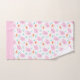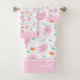 Add a cute nautical touch to the bathroom of your little girl with this fun custom ocean pattern bath towel set. Towel set has a pink jellyfish, red crab, blue fish, and pretty background coral. At the bottom personalise with your young kid's name, or remove, per your preference.