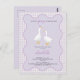 Welcome baby with whimsical charm with this charming baby shower invitation featuring two hand-painted geese—one with a ribbon, the other in a party hat. Set against a soft lilac wavy frame with cream gingham accents, this design is sweet, playful, and perfect for baby boys or girls. The main text reads “A little goose is on the way” and all text can be customised. Original art by Nic Squirrell.