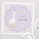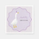 Set the sweetest table to welcome a new baby with these adorable paper napkins, featuring a painting of a goose in a party hat and ribbon, soft lilac gingham background, and wavy-edged frame. Designed to match the Little Goose baby shower collection, they are perfect to celebrate the imminent arrival of a little baby boy or girl.