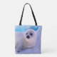 Little Harp Seal Pup Covered in Snowflakes Tote Bag