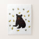 This is an adorable little black bear surrounded by cute fun little buzzing honey bees. This is the perfect design for children's clothing or room decor.